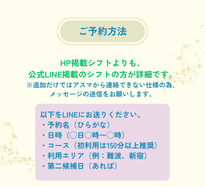 - LINEにて希望日時🌱受付中空き状況