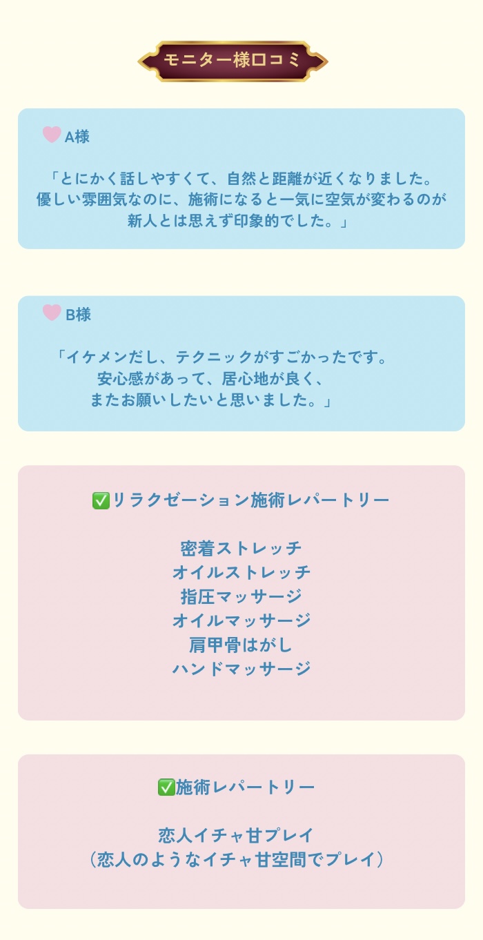 ◆同一セラピストの2・3回目のご投稿:10分延長無料