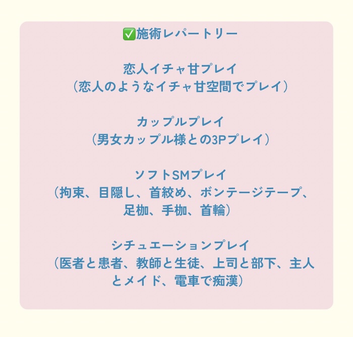 ・性感利用不可(施術希望の場合は延長で対応可能)
