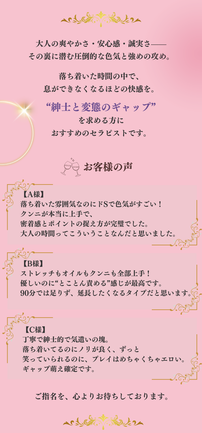 ◆同一セラピストの2・3回目のご投稿:10分延長無料