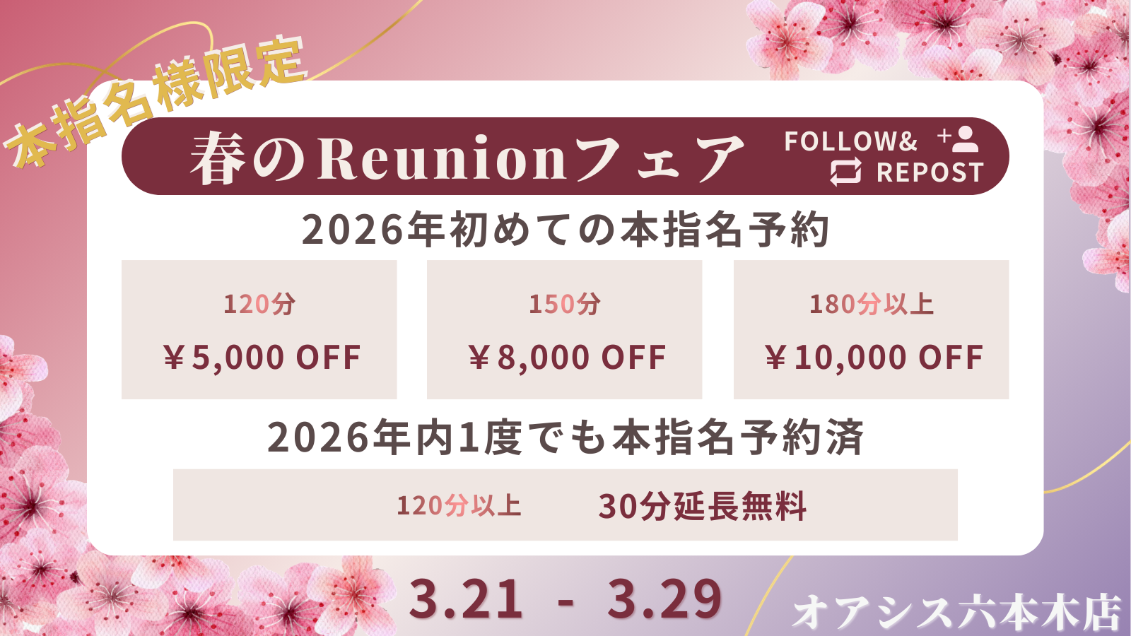 2026年において初めて本指名予約をされる方が対象となります✨