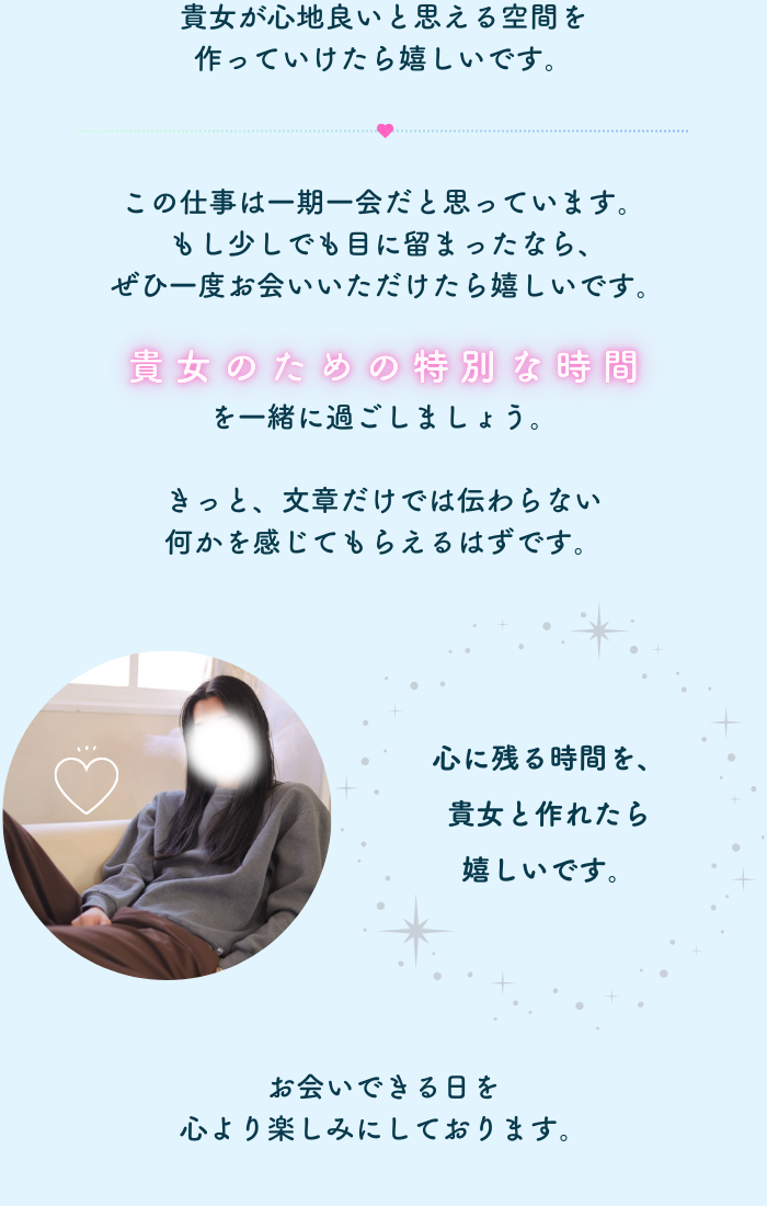 ◆同一セラピストの2・3回目のご投稿:10分延長無料
