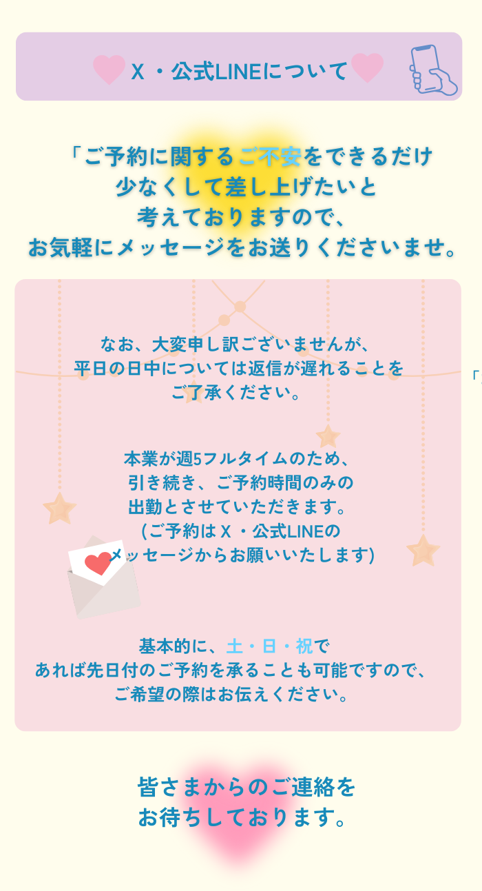 ◆同一セラピストの2・3回目のご投稿:10分延長無料