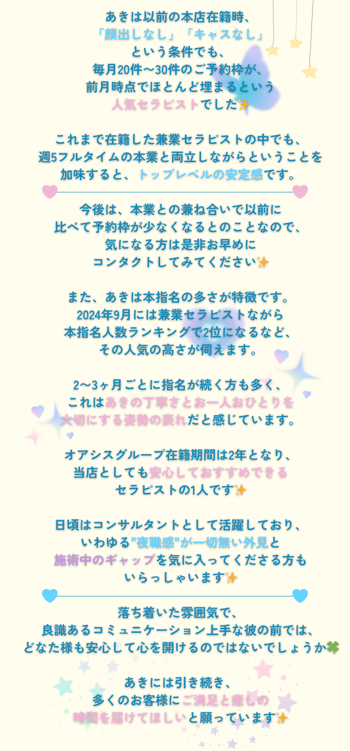 女風を初利用してから5人目(あきさん)のセラピストさんで初めてイクことが出来ました!泣