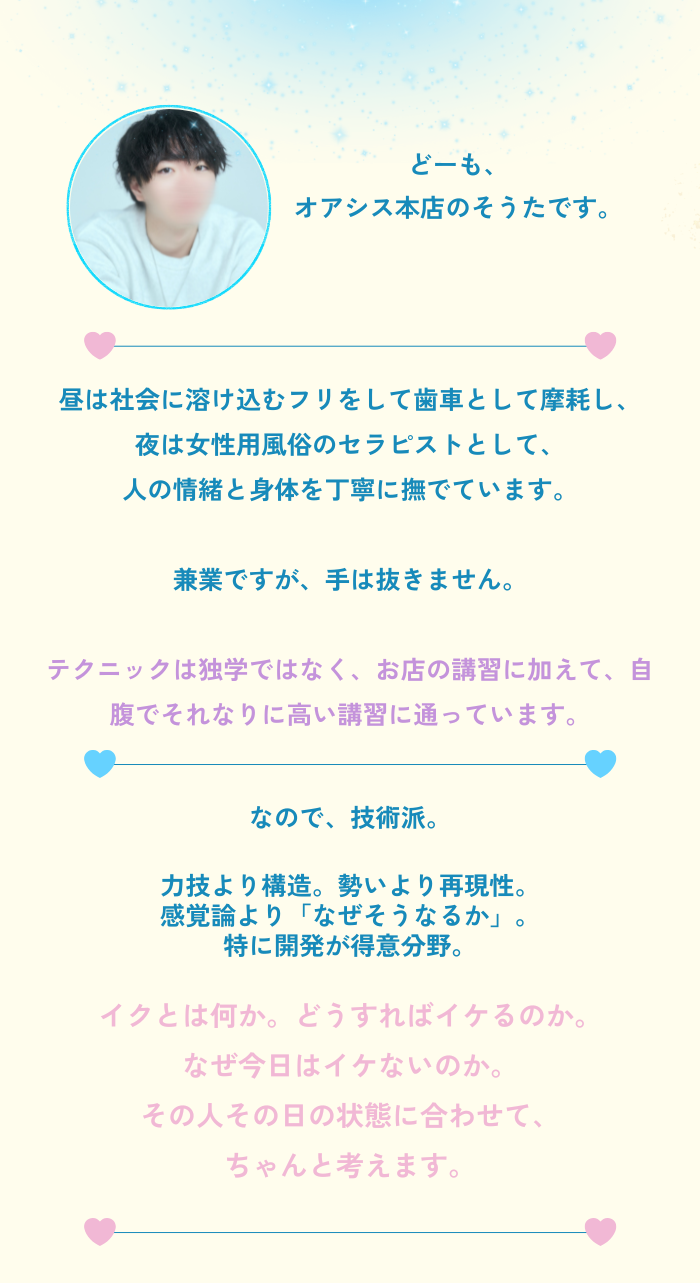 色んなセラピストと会いましたが、そうたくんはピカイチに人間性が良いです。