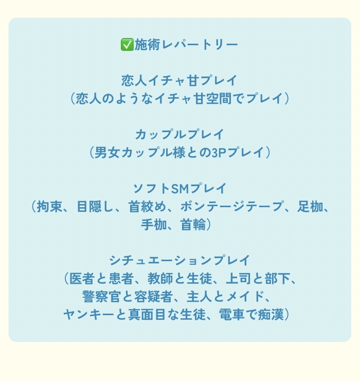 女風の利用自体初めてだったのですが、事前に一度もやり取りなどもせず当日突然即メンでお願いをしてしまい驚かせてしまったと思います💦