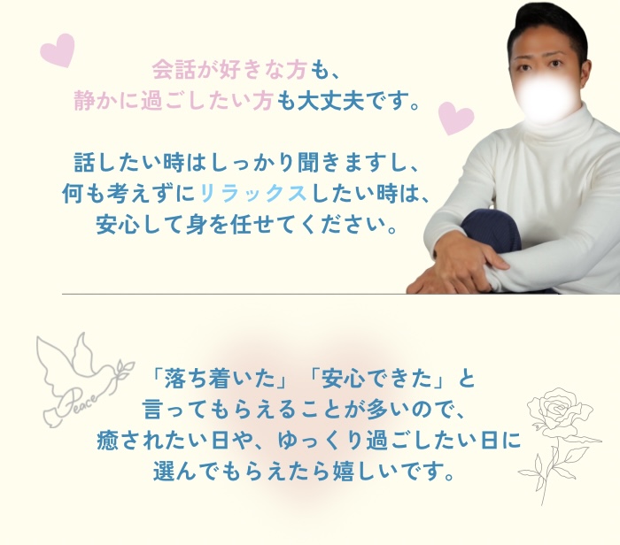 ご予約の際に、(ご利用日・セラピスト名・ハンドルネーム)を添えて「口コミ特典利用」とお伝えください。