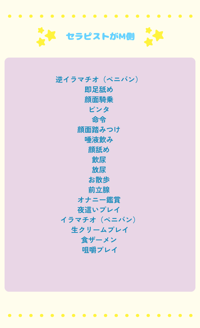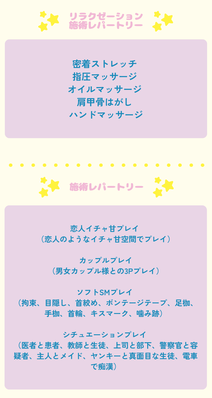 終始優しく寄り添ってくれて、癒されたい方や可愛い系のセラピストが好きな方にはぴったりだと思います。