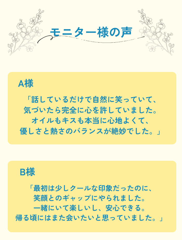 ◆同一セラピストの2・3回目のご投稿:10分延長無料