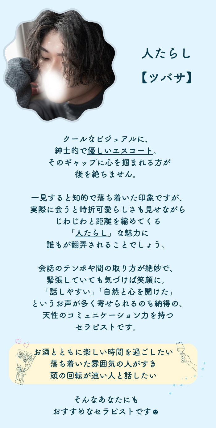 「どのセラピストさん指名しよう…?」って迷ってるなら、つばさくん本当におすすめです✨