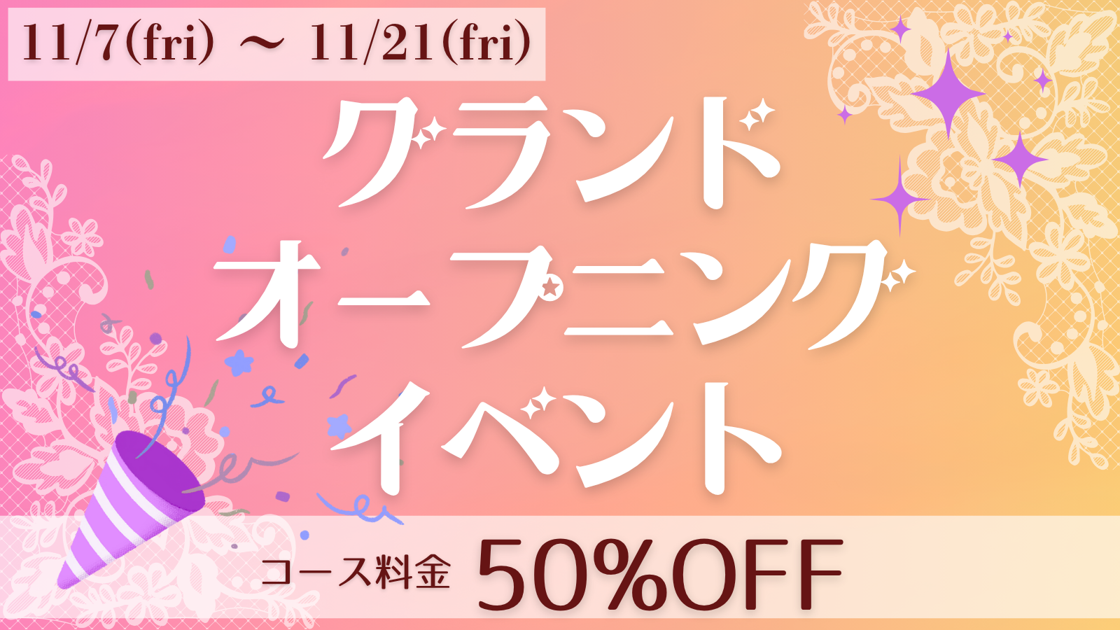🎉11/21まで📢グランドオープニングイベント開催中🎉11月17日(月) 18:00