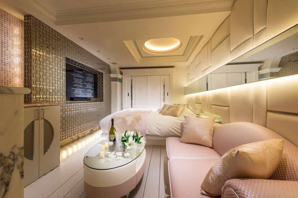 全室ミストサウナ、レインボーバス、VOD、カラオケ完備!