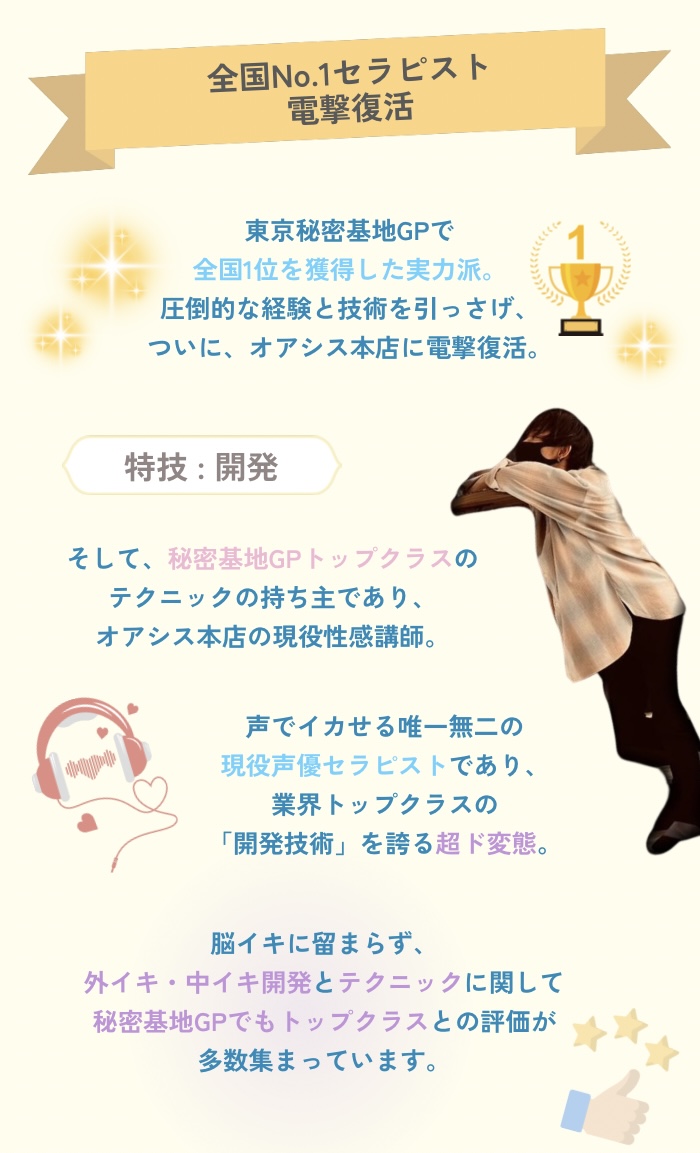 テクニック、異次元、まさに性感NO.1、安心感、プロ