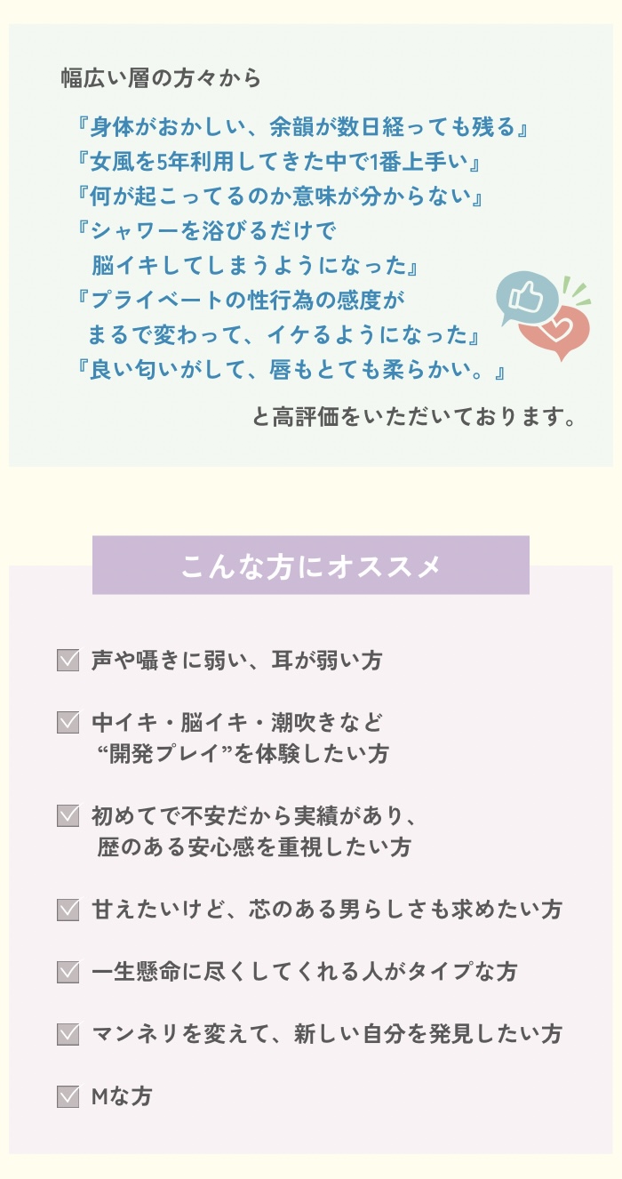 ユーチューブのボイスを聞いて気になって予約してみました。正直ユウキくんの日記の脳イキ動画を見て少し怖かったのもあったのですが、まさか私が最初から最後まで脳イキするとは思いませんでした😅