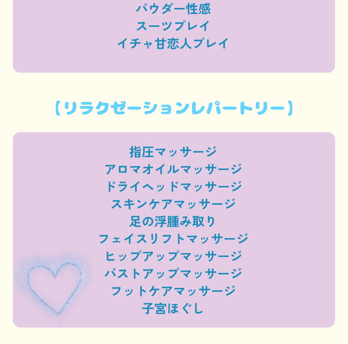 マッサージも色々と提案してくれて帰る頃には身体が軽くなっていました。本当にお上手!!性感はふわふわした心地になるほど気持ち良すぎました。色々と開発されていたかも…?次回のお話もしているのでドキドキです。あと、沢山のアロマから選べるのも嬉しかったです💕 空間すべてで癒されました。
