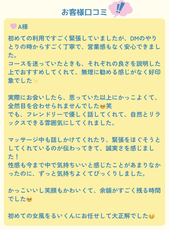 Xでの言葉遣いや雰囲気が素敵だなと思い、今回初めて指名しました。