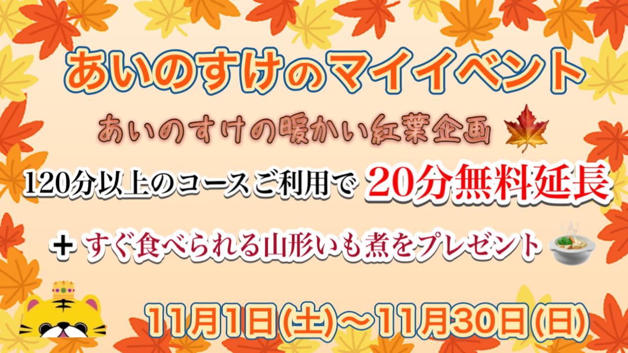 120分以上のコースご利用で20分無料延長+すぐ食べれる芋煮をプレゼント✨