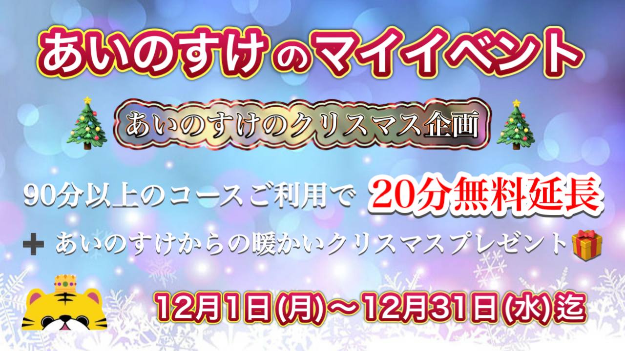 90分以上のコースご利用で20分無料延長+あいのすけからの暖かいクリスマスプレゼント🎁