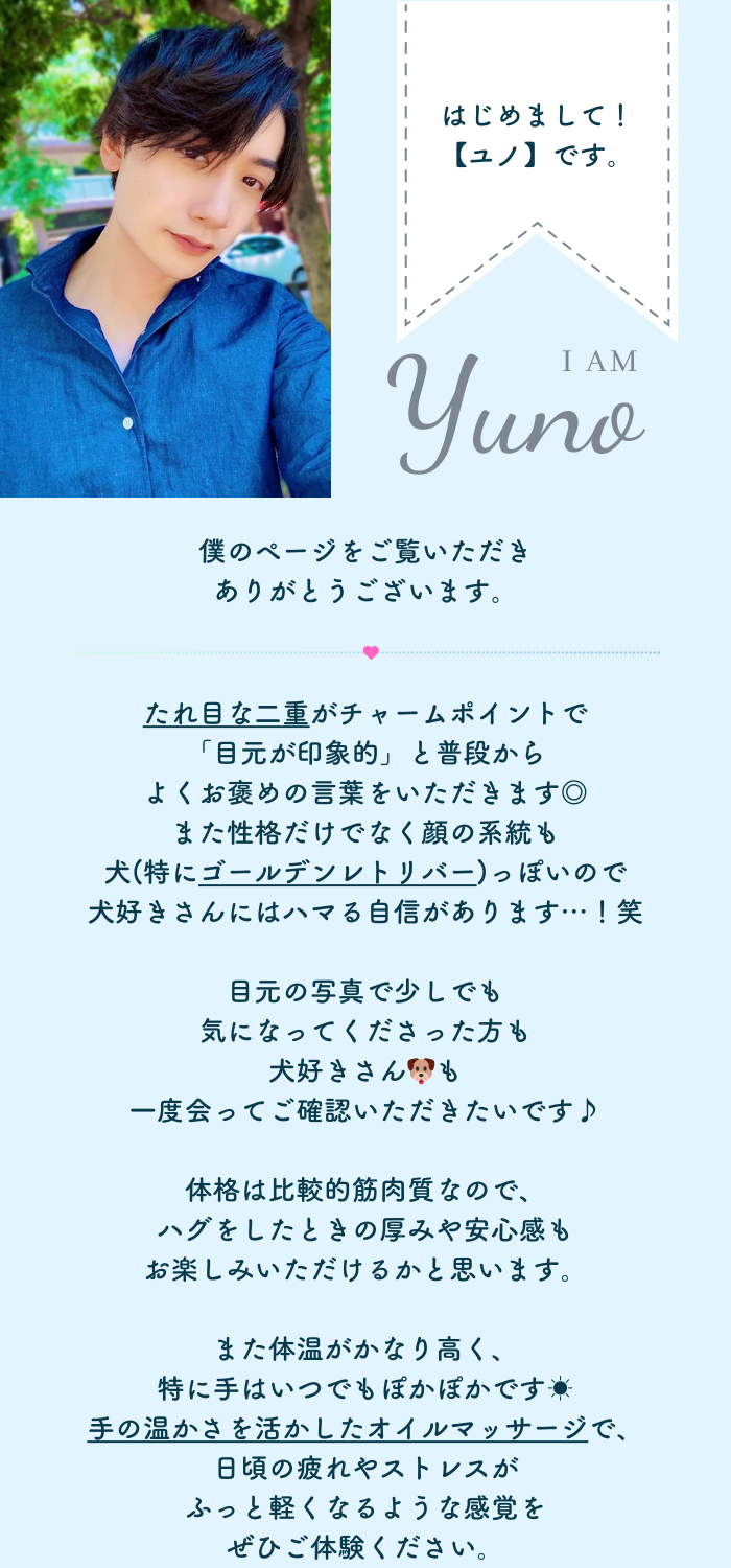 はじめてユノさんを指名させてもらったのですが、実際会ったらすごくイケメンで写真通り…いや実物の方がカッコいよかったです🫶