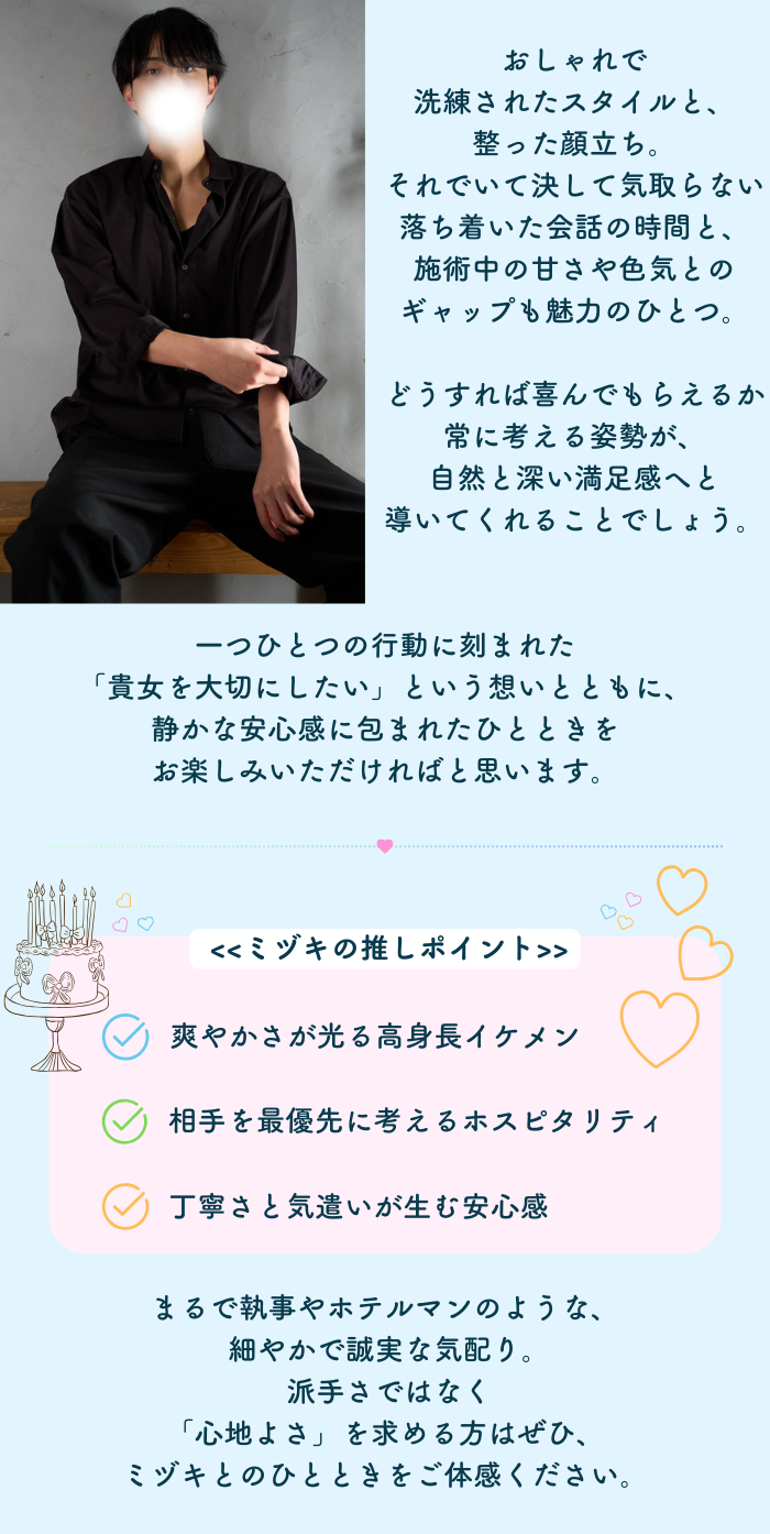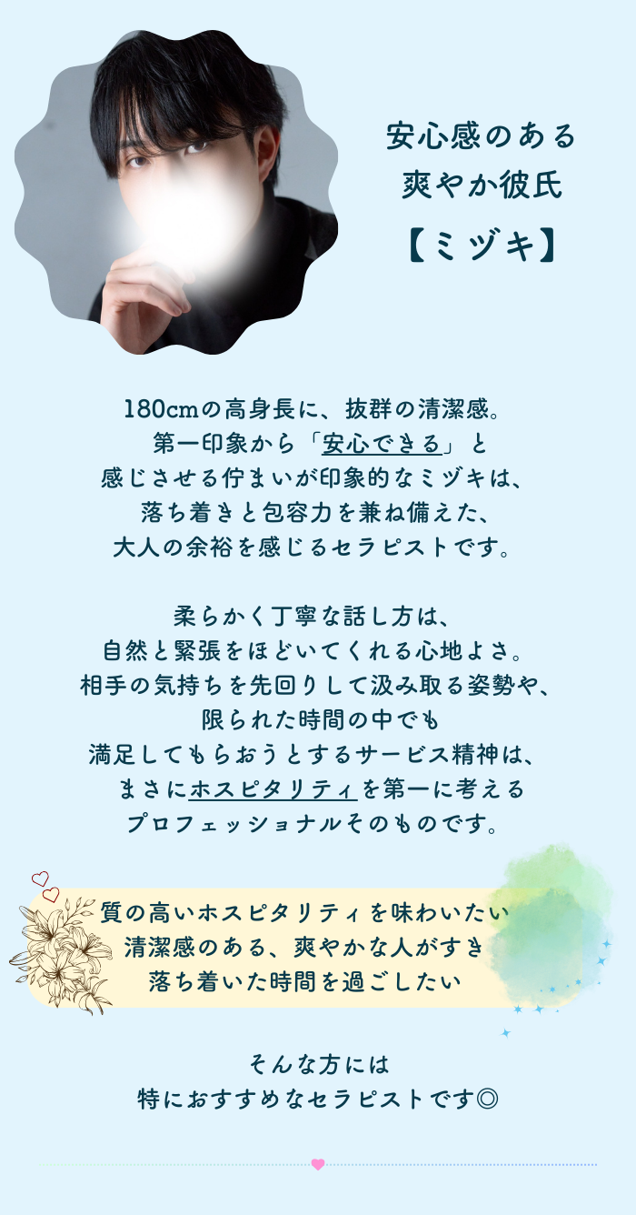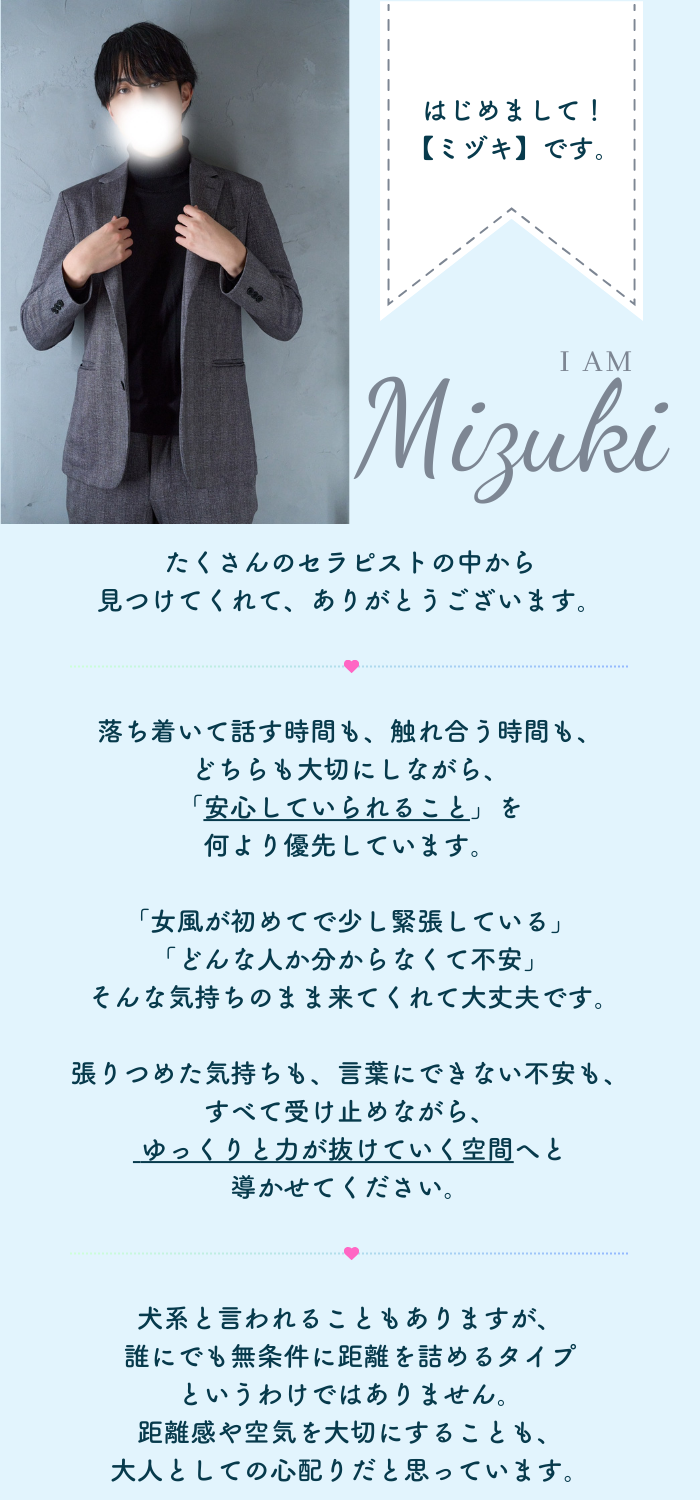 はじめて女風を利用しました。ドキドキしてたけどミヅキくんのおかげですごい楽しい時間でした。