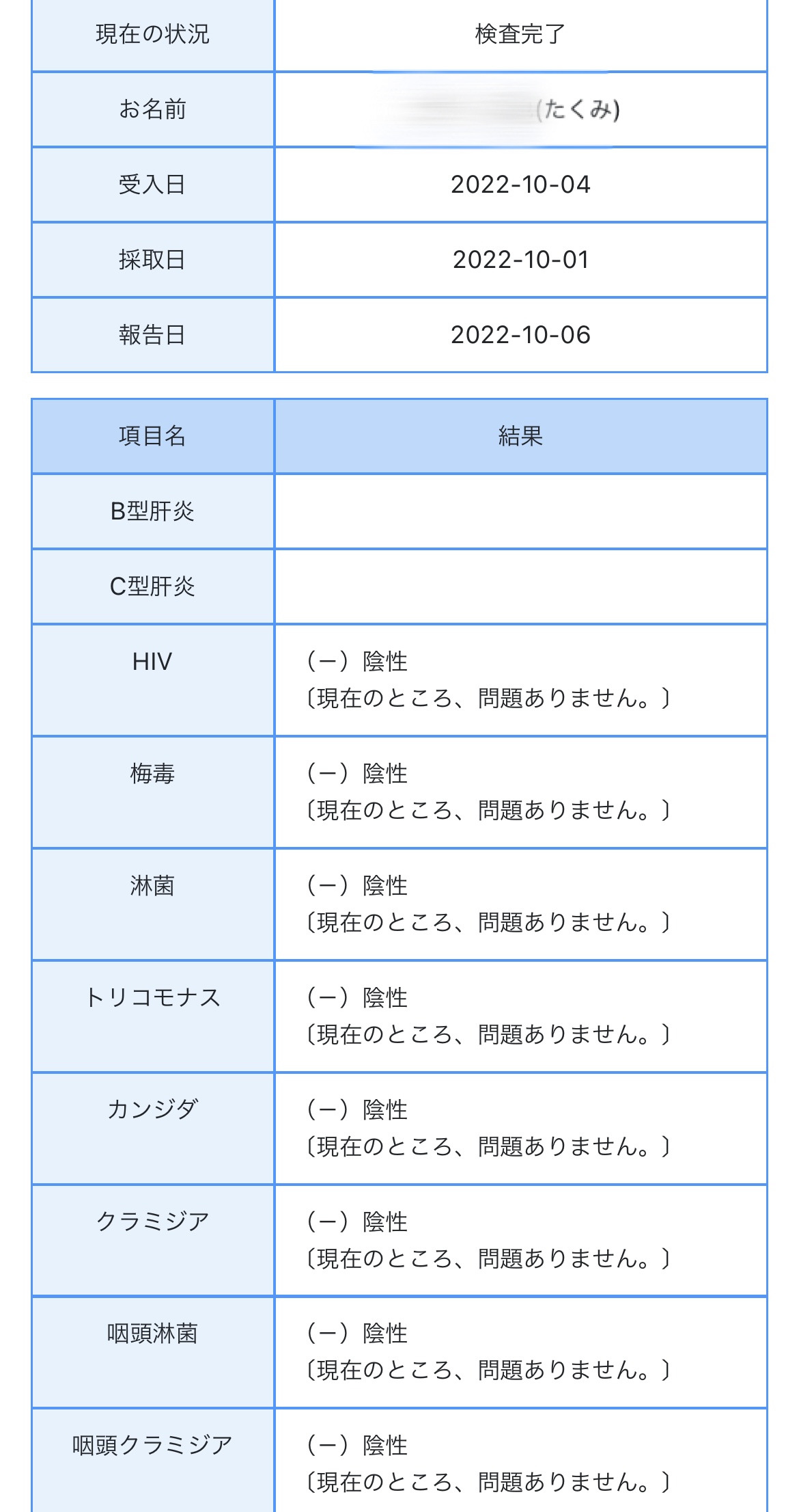 10/06 15:00 UP! 9月度性病検査結果について。TAKUMI(タクミ) (35歳)