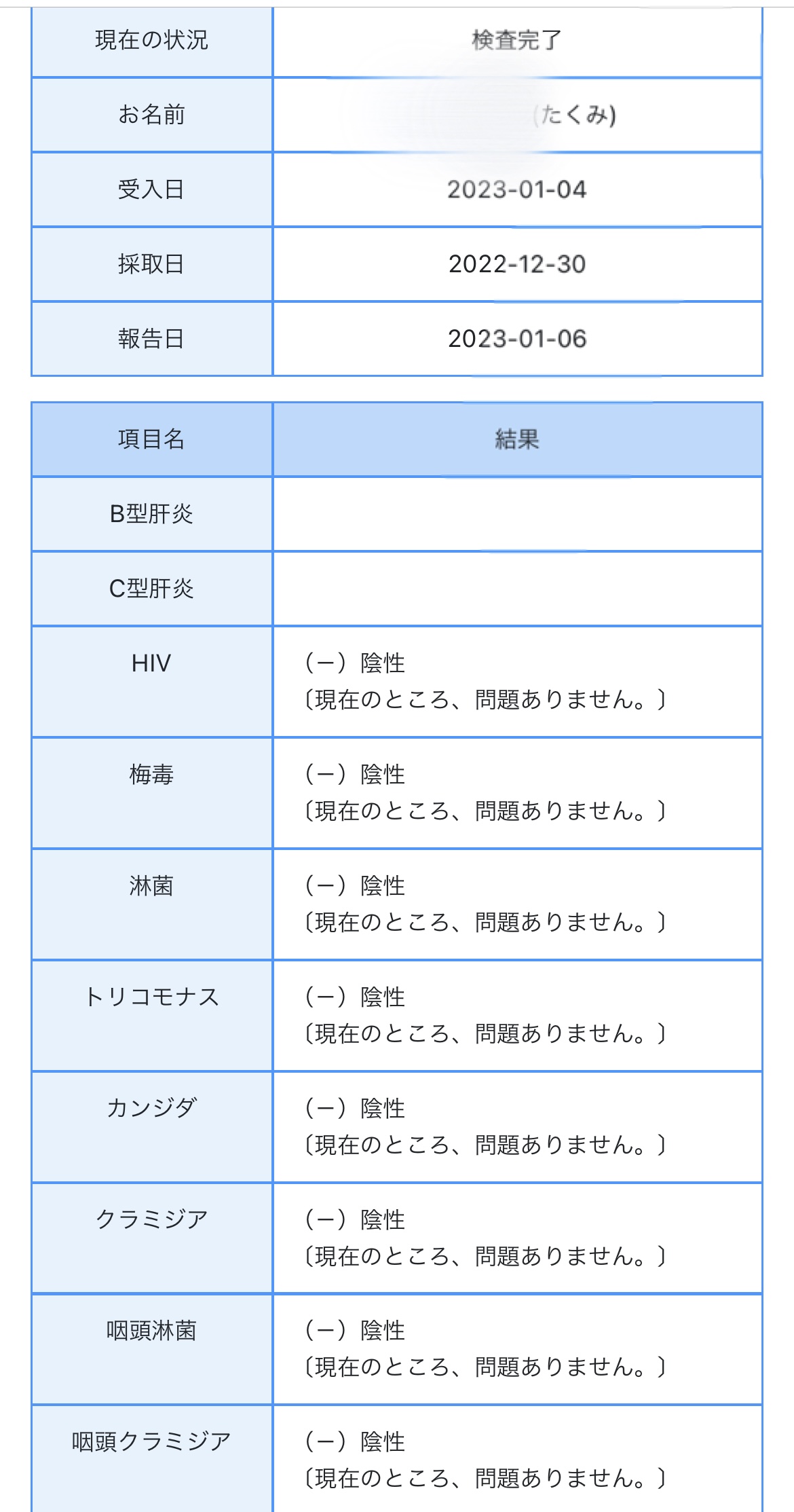 01/06 10:24 UP! 1月度性病検査結果についてTAKUMI(タクミ) (35歳)