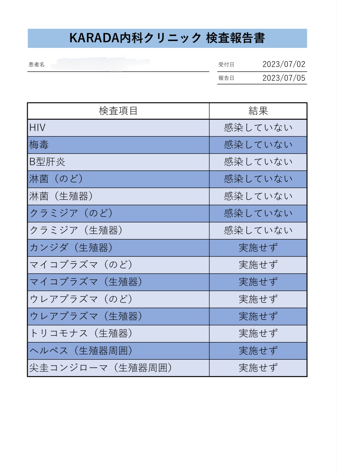 07/05 12:06 UP! 7月度性病検査結果についてTAKUMI(タクミ) (35歳)