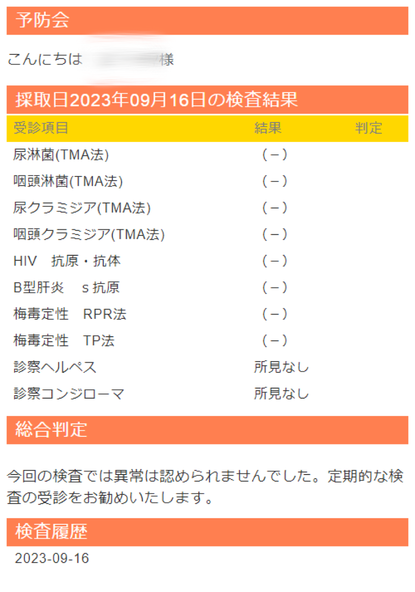 性病検査を受けてました。