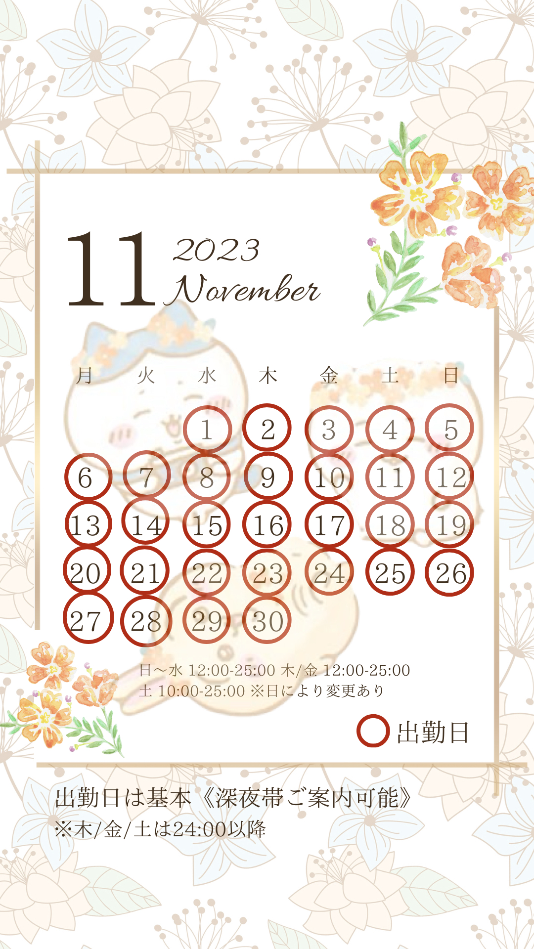 深夜帯も基本全日OKです。
