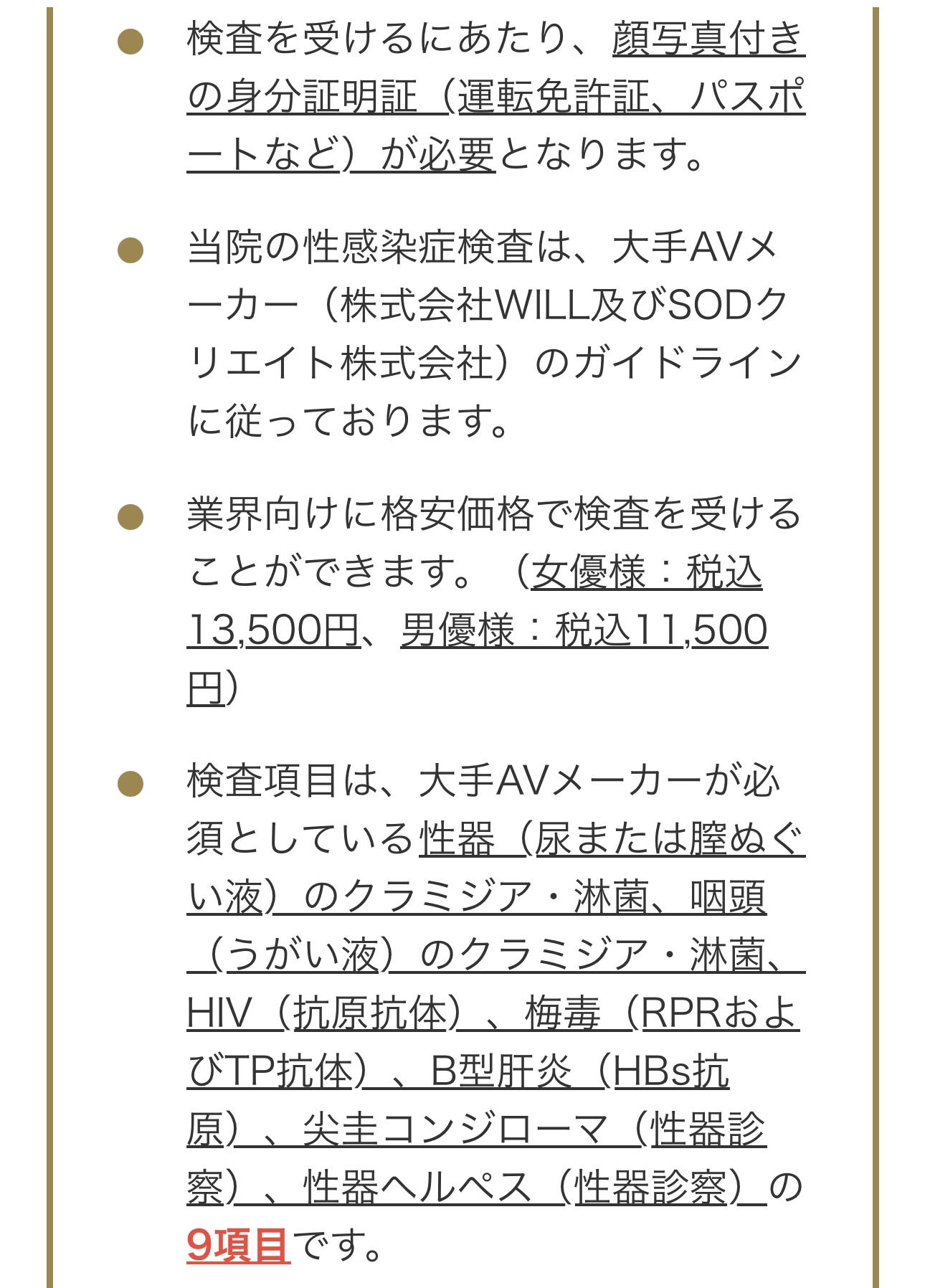 ・検査項目の数(7項目→9項目※セラピスト基準より多め)