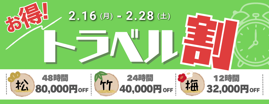 【本日最終日】⏱️👑トラベル割👑⏱️02月28日(土) 10:00