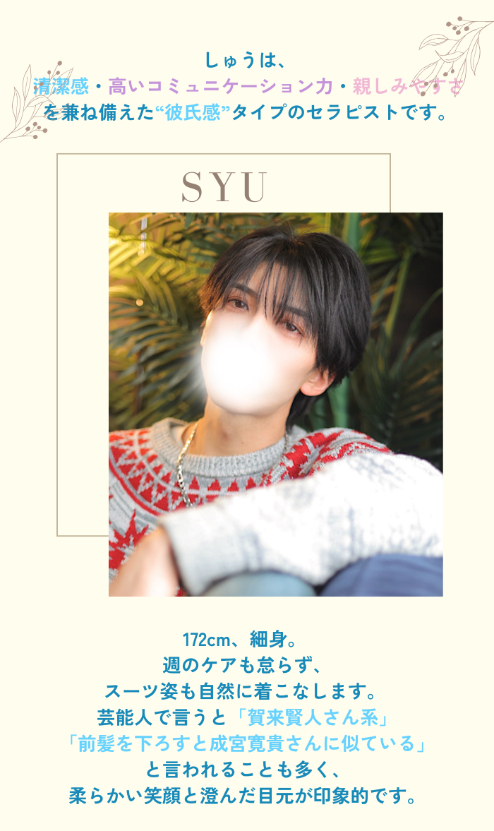 💙入店情報💙しょうゆ系イケメン【しゅう】03月01日(日) 10:00